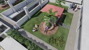 Rooftop plantation Garden & Grass Turf with sitting facilities.